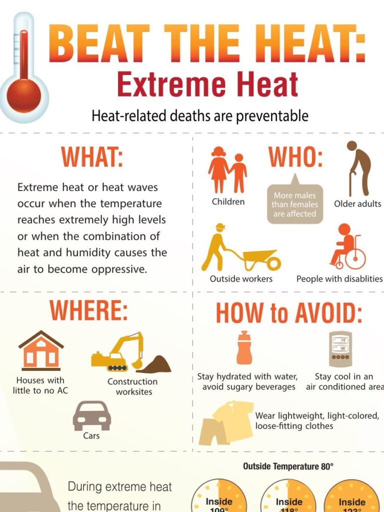 The first is a series of clear, uncomplicated “Beat the Heat” safety precautions to safeguard yourself against extreme heat.